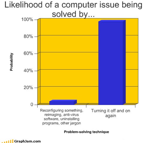 The good people at GraphJam.com have given a nice graph to help with the probability and the solutions for fixing issues that arise with computing technology today. Enjoy Friday the 13th !!!!!